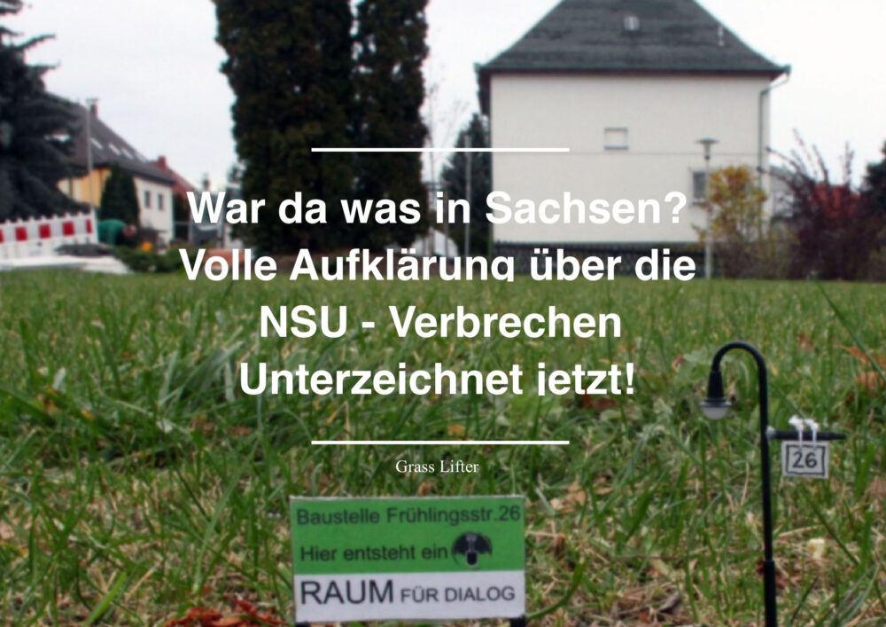 Mit diesem Brief möchten wir die Nachfrage nach Aufklärung, Aufarbeitung und Erinnerung sichtbar machen. Denn wir sehen kaum Angebote in Sachsen, bzw. in den Städten Chemnitz & Zwickau, in denen die Verbrecher wohnten und ihre Taten planten. Wir möchten dazu einladen den politischen Entscheidungsträgern und der Öffentlichkeit zu zeigen, wie wenig uns die bisherigen Maßnahmen ausreichen und dass wir noch viele unbeantwortete Fragen haben. Wir wollen mit diesem Brief dazu aufrufen, dass diese grausamen rechtsradikalen Verbrechen nach 1945 in Deutschland angemessen betrachtet und verarbeitet werden sollen. Unser Ziel ist es, dass solche Taten unter uns nie wieder geschehen. Gemeinsam sorgen wir dafür, dass das Gras nicht weiter über die Sache wächst.