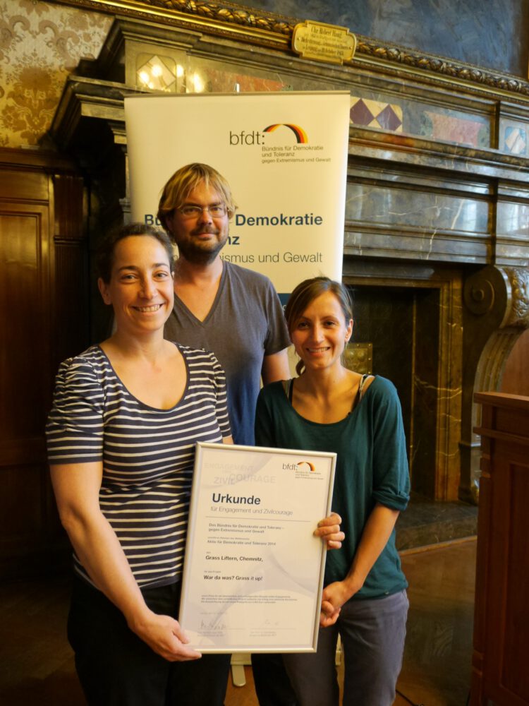 Unser Projekt Grass Lifter ist gestern vom „Bündnis für Demokratie und Toleranz“ der Bundeszentrale für Politische Bildung (bpb) ausgezeichnet worden. Wir sagen herzlichen Glückwunsch und so weitermachen in Sachsen!